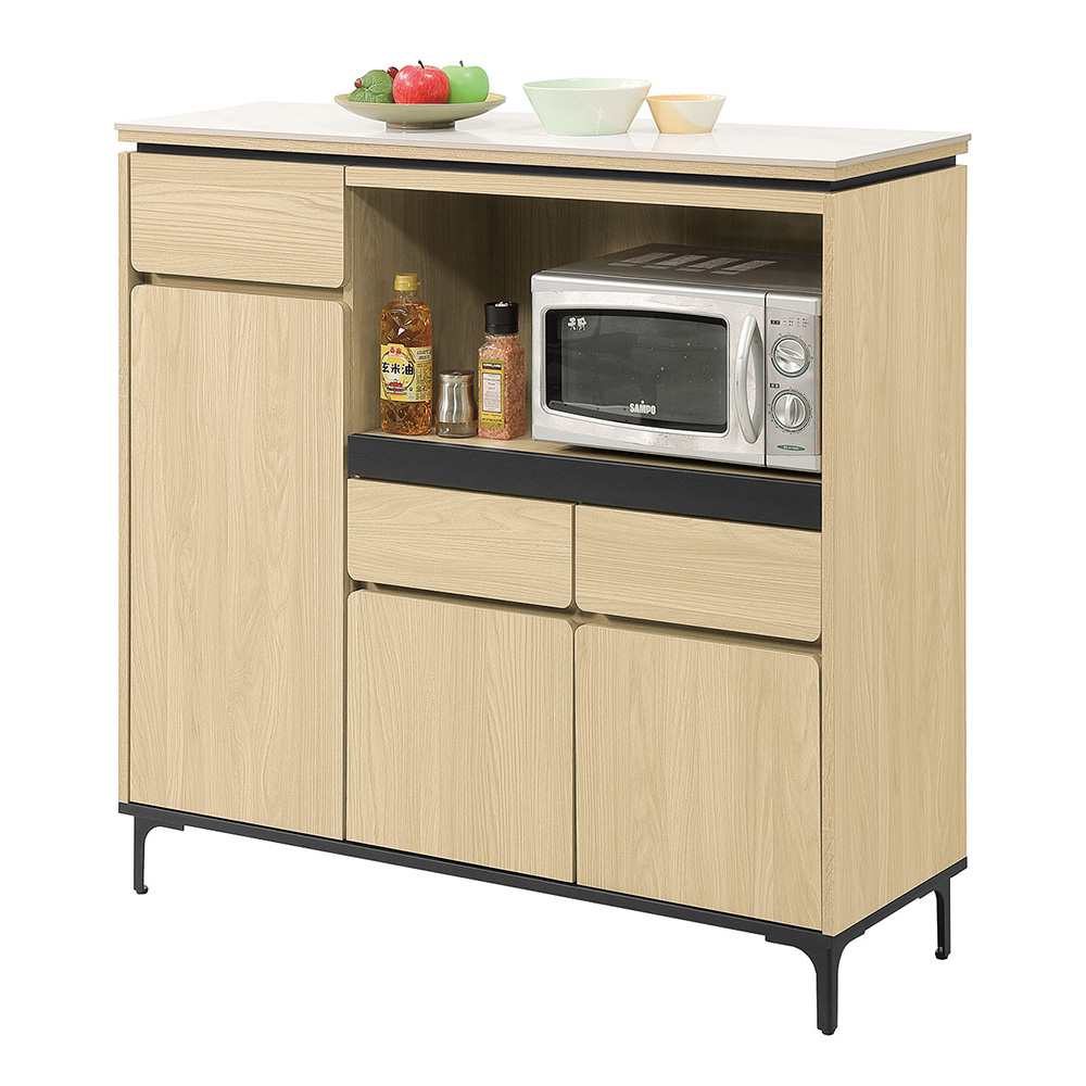 表面及側板栓木色耐磨耐水浮雕木紋紙+黑色配色美耐皿具高溫耐括磨之特性