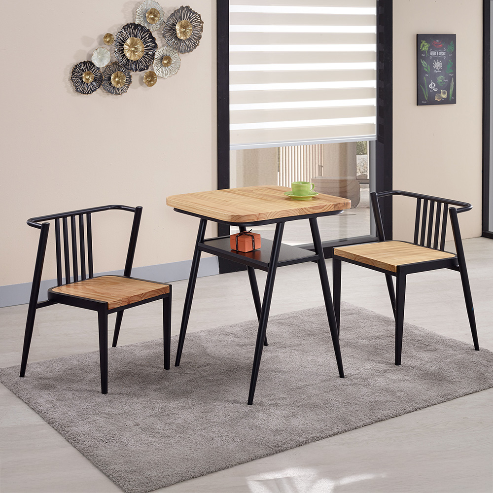 餐椅:松木實木+黑鐵砂烤漆防鏽處理腳架