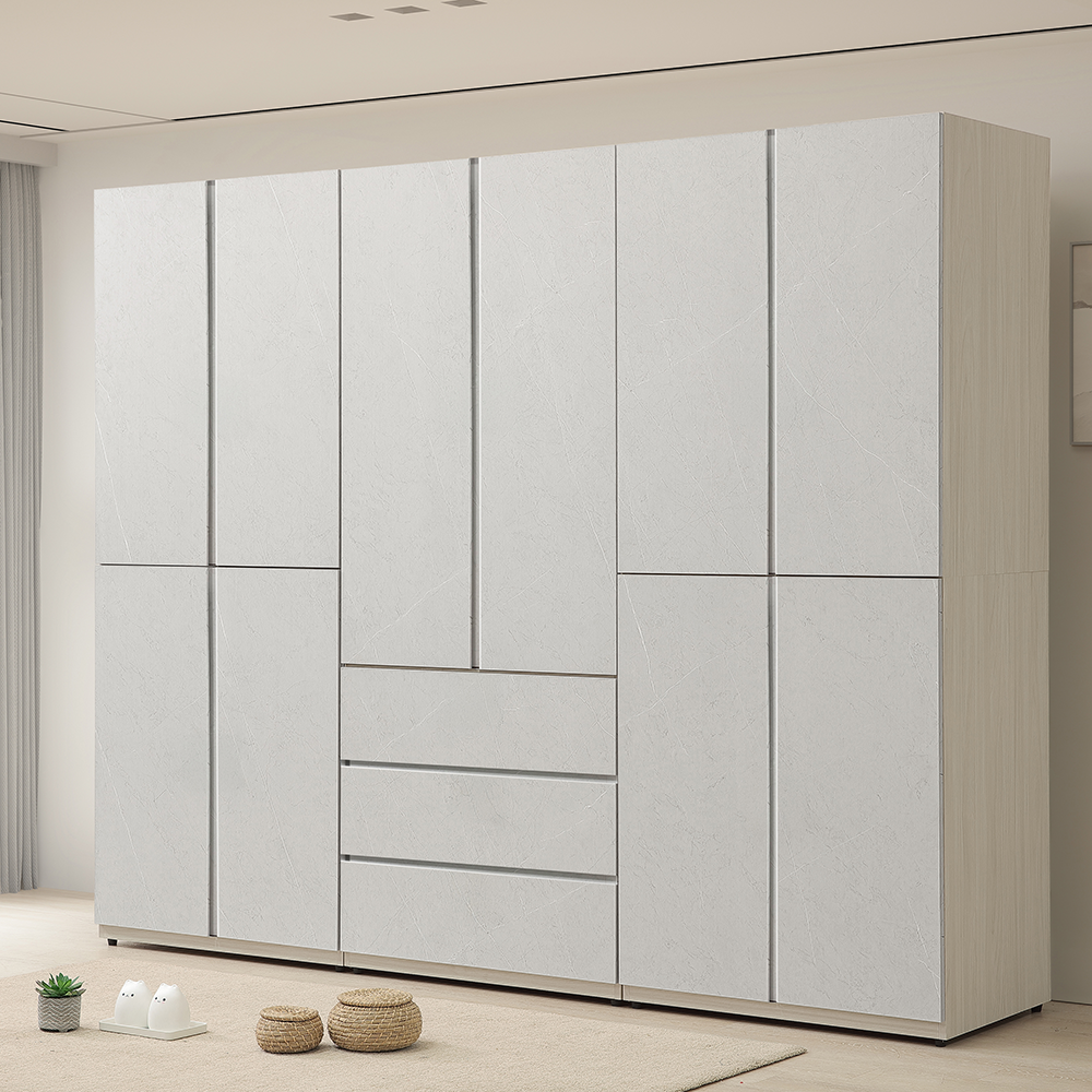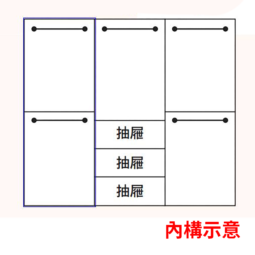 (白雲木2.6尺雙吊衣櫃x2+白雲木2.6尺三抽衣櫃)