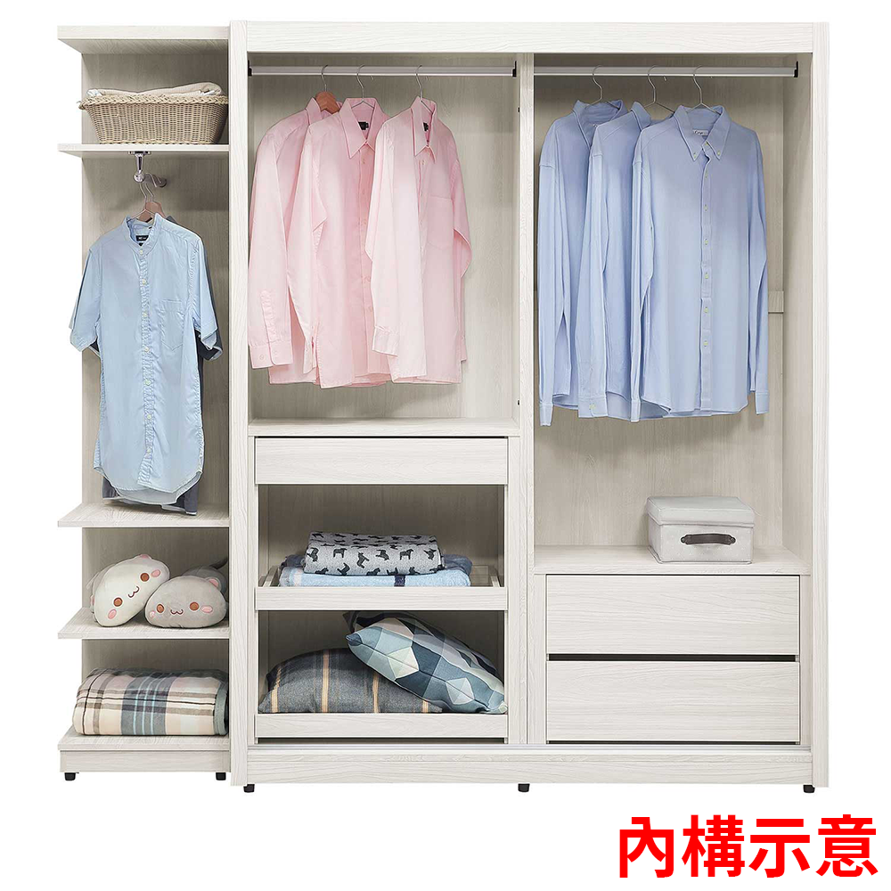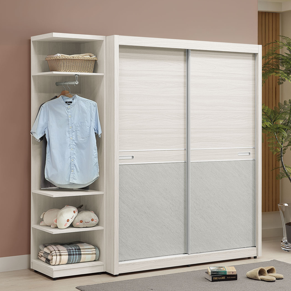 (黛拉5*6.5尺推門衣櫃+蘿拉1.5*6.5尺開放轉角衣櫃)
