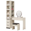 抽牆牆板採用木心板;化妝椅皮墊採用高級耐磨透氣皮,可掀開置物